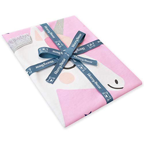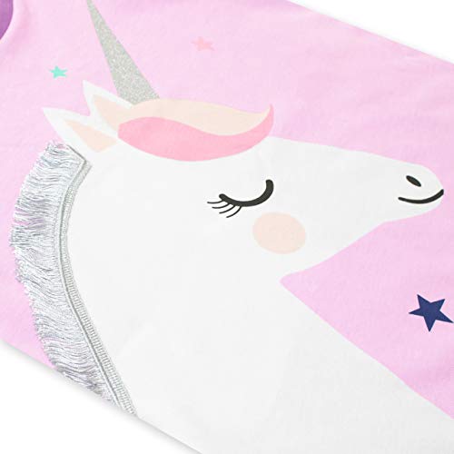 Details: Imaginations can run wild in this adorable unicorn T-Shirt! Designed by Harry Bear, this tee in shades of purple showcases a mystical white unicorn on the front adorned with silver glitter horn and 3D fringe mane. With multicoloured star background and dipped hem for ultimate comfort, this short sleeve top is perfect for any fan of these fabled ponies! Crafted in super soft stretchy cotton for comfort this exciting unicorn top is filled with magic! Finished with hand-tied ribbon to make the perfect gift!