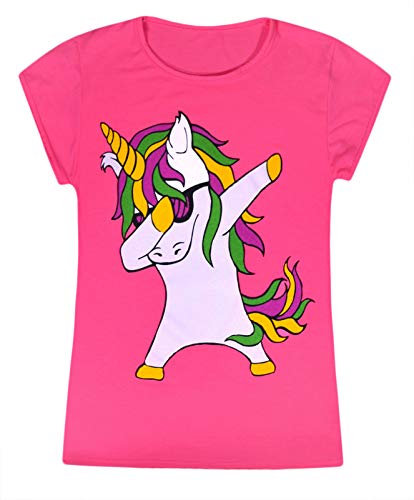 Jolly Rascals Girls Unicorn Top | Kids Dabbing Unicorn Short Sleeve T-Shirt | Various Ages