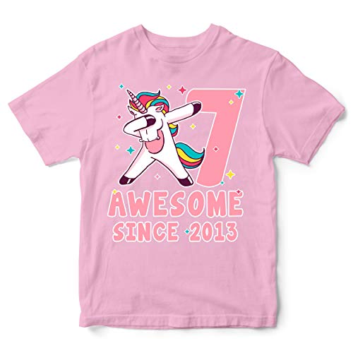 - This Girls T Shirt Is Printed With A Cute Dabbing Unicorn, personalise it for the Birthday girls age and year she was born to make a unique gift.