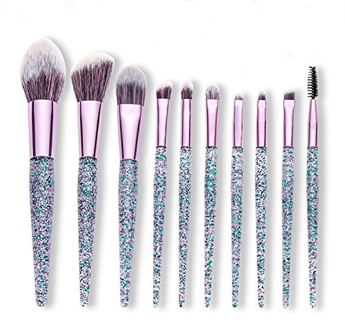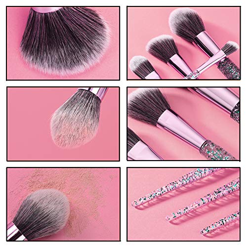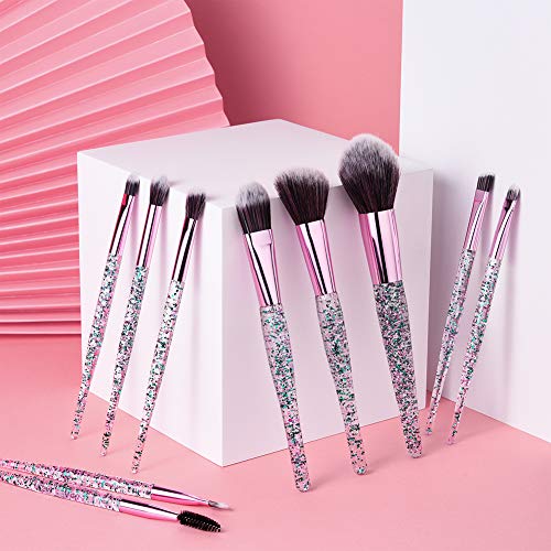 10 Pcs Glitter Makeup Brushes Set | Unicorn Crystal Pink Cosmetic Brush