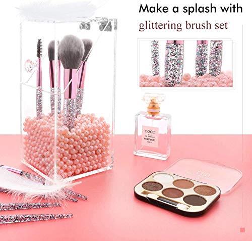 - PORTABLE TRAVEL BRUSH KITS: Take your makeup and brushes with you everywhere with your new FREE glitter makeup bag, it helps anti-bacterial, and hypoallergenic.