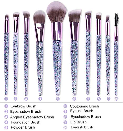 Crystal Glittered Unicorn Makeup Brush Set | Professional 10Pcs | With Make Up Bag