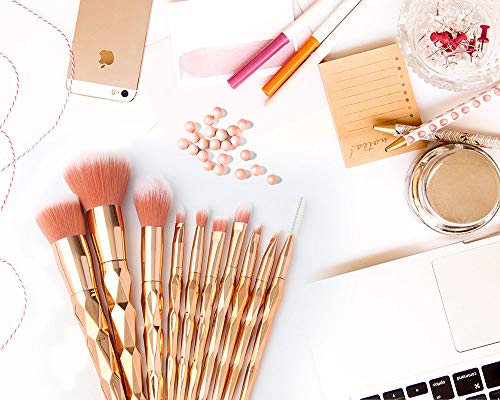 - Beautiful appearance: Make-up Brush has a bright color of rose gold, similar to the shape of a pyramid, or diamond shape.