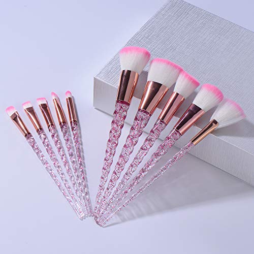 Unicorn Glittered Makeup Brush | 10 Pcs | Diamond Crystal Handle Spiral Pattern