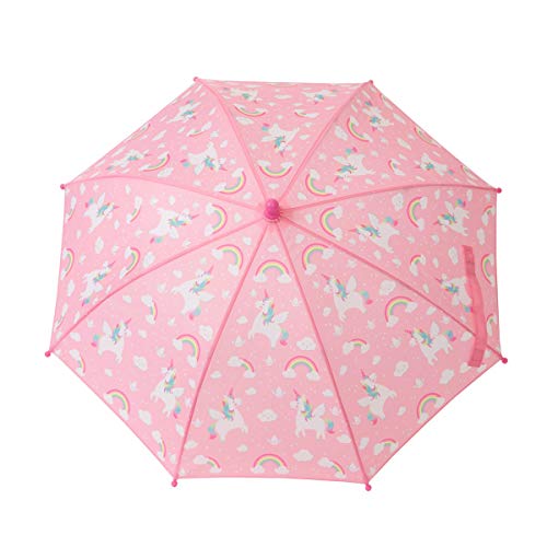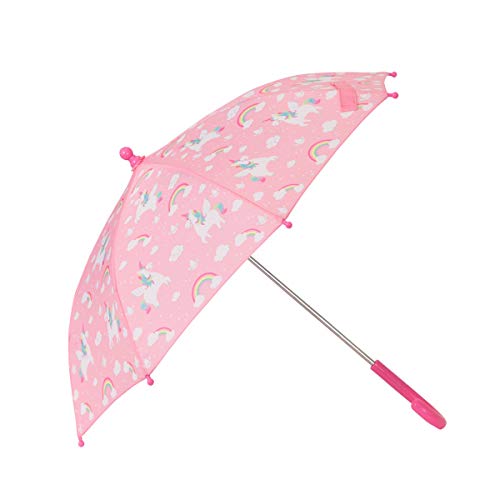 Details: You can't make a rainbow without a little rain, which is why we made this Rainbow Unicorn Umbrella. We know a little bit of rain is enough to ruin even the best day, but with this pretty and adorable umbrella in your life, even the most miserable weather can't stop those fun and magical vibes! Perfect for little ones who love all things pink and unicorn! Although we can guarantee a dry head, we cannot promise to protect from those irresistible puddle jumps!