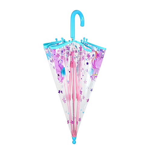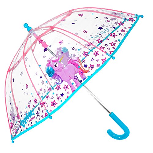 Details: Unicorn Kids Umbrella - Bubble Stick Umbrella for Girls - Windproof and Resistant Dome Brolly in POE - Safety Opening - 3 to 6 Years - Transparent - Diameter 64 cm - Perletti Cool Kids
