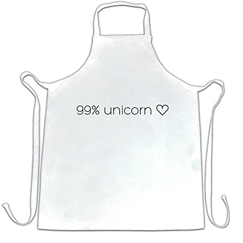 Unicorns are taking the world by storm and the mystical creatures are now entering the kitchen! This unicorn apron features a simple funny quote which reads "99% unicorn", and has a little love heart at the end. The design is a simple white with a cool black font.
