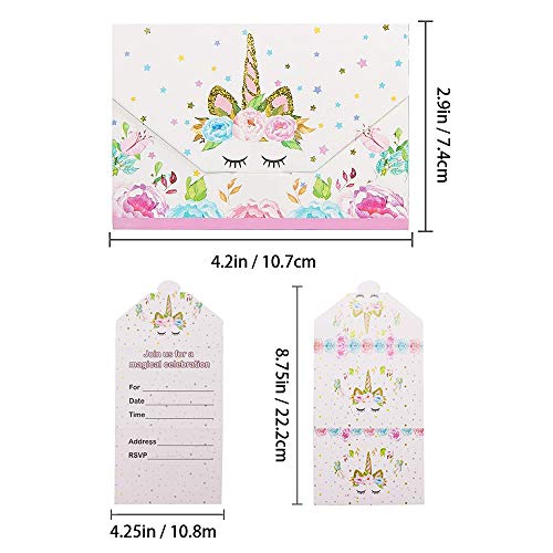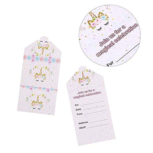 - Design: Cute unicorn with sparkle design. With fill in style on the back, you can write down your invitation details conveniently.