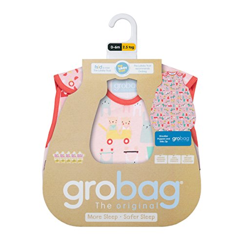 Details: Product Description Sugar and spice and all things nice, this elegant design combines super sweet characters on a pale pink background with a gorgeous contrast piping to finish off the theme on super soft jersey cotton. Grobag is the no. 1 baby sleep bag and leads the market in product safety and quality standards. The Grobag provides a safer, easier to use alternative to lose sheets and blankets offering a much better night’s sleep. Grobags take confusion away, meaning quality sleep for parents too as the soft fabric, accurate togs and sizing and clear guidance keep babies safe and comfortable through the night. Grobag is the only product recommended by The Lullaby Trust, the UK’s leading safe sleep charity. Safety features include double shoulder poppers, zip click covers, underarm poppers for small babies on 0-6mth bags, secret seams and chin guards to prevent rubbing. Fantastic quality premium 100 percent cotton is used, which washes brilliantly without shrinking. Gorgeous designs cater for every need and there are even travel Grobags. No other baby sleep bags offer the same quality, choice and durability. Box Contains 1 x 6-18 m 2.5 Tog Grobgag 1 x User Guide 1 x Nursery Thermometer