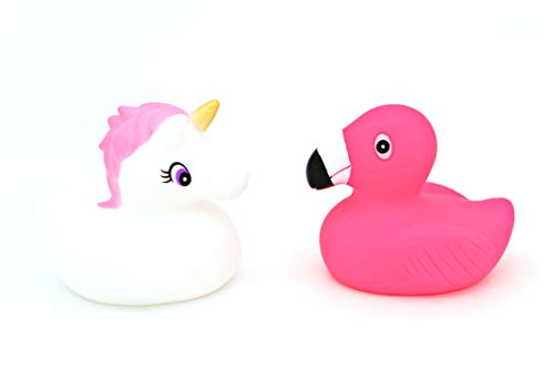 - Squeaky duck: flamingo with spout pink and magical unicorn, fun gift, a very special accessory