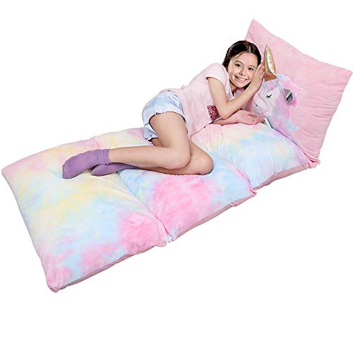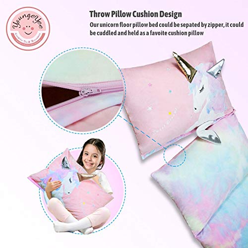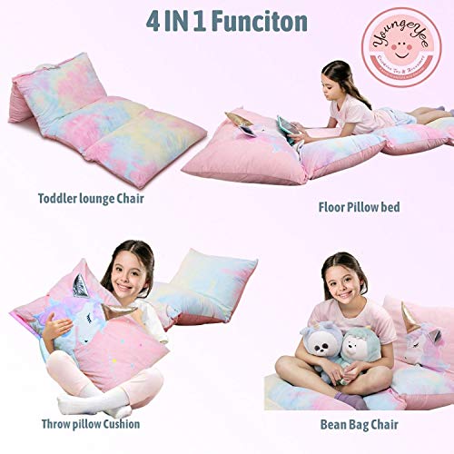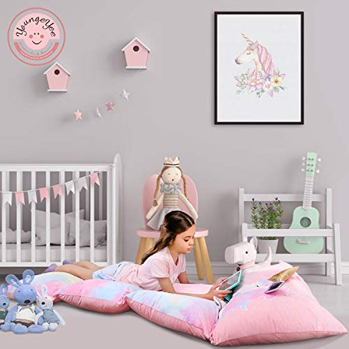 - 4 in 1 function:First, unicorn floor pillow bed could be sepated by zipper, kid could cuddle and hold as their favoite cushion pillow. Second, it could easy turn into a high dollar floor lounger for kid to read or play video games. Third, It also can become a praticle kid lounger pillow for kid to enjoy all kind of fun activities on the floor. Forth, it could turn into a comfortable kids floor lounger with pillows