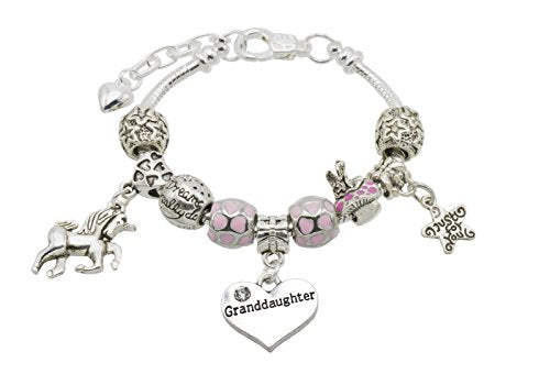 Girl's Unicorn Message Charm Bracelet with Gift Box - 9 Special Messages to Choose from (Granddaughter)