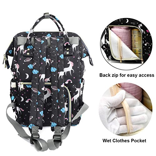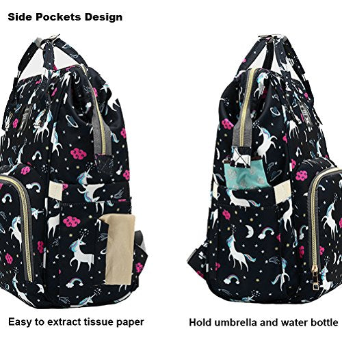 Details: We designed a professional diaper backpack for new Mom/Dad, it also can be used as a casual daypack or travel bag, lightweight, comfortable, carrying a long time without fatigue. especially, the unicorn pattern style brings you a new experience, fashion and outstanding. This diaper bag with multiple internal & external pockets, separated storage pockets keep all your baby and elementary child's items organized, everything has its place. Includes: - 3 x insulated Milk bottle pockets(in the front) - 1 x tissue pocket(on the side) - 1 x water bottle pocket (on the side) - 1 x Wet bag (in the interior),you can put baby's wet clothes. - 7 x storage pockets(in the interior) Package included: 1*Diaper Bag.