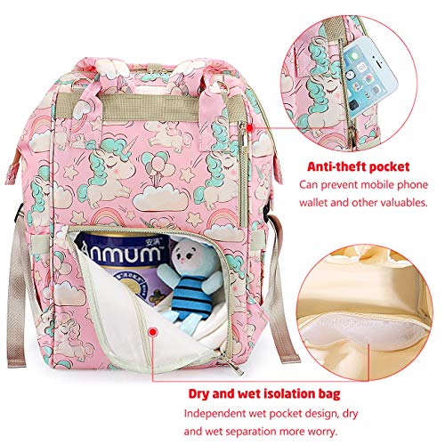 Pink Unicorn Design Baby Changing Bag | Backpack Style Baby Bag