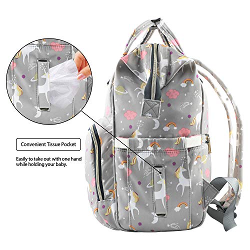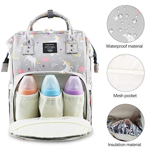 Details: Description: Packing including: 1 x Diaper Bag Product Dimensions: 10.6" x 8.3" x 16.5"6 This baby bag organiser with insert handbag can loads lots of thing. Several inner pockets and organiser cubes can meet moms ' requirements. Feeding things securely separated and easy to find and get to. This diaper changing backpack really can hold a lot of stuffs. It is light and suitable for young mothers also. This diaper bag is made of top quality oxford fabric and polyester material. It's very durable and lightweight. Give you the natural and comfortable feeling even packing heavy lots. The nappy changing backpack is waterproof both inner and extra, no worries about getting wet anymore. Fashion and cute unicorn printing design is welcome by the young mom also. This large waterproof baby bags for mums can be used as the shopping tote bag, travel backpack and hang baby bag for prams, buggy, pushchair etc. Inside lining of this diaper backpack bag with wide open design is water-resistant and easily wipe-clean too. The messes or spills can be easily cleaned up in a breeze. Mom bag with insert organizer is the fancy alternative for kaylee, skip hop, columbia and ticent diaper bag