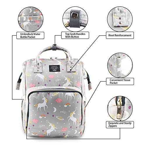 Unicorn Design | Lequeen Waterproof Baby Nappy Changing Bag | Grey