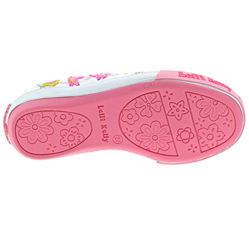 Details: Lelli Kelly Unicorn dolly shoes are so magical! Unicorn dolly shoes comes in a white canvas upper which is decorated with a series of printed unicorns, rainbows, hearts and stars. Part of the design is adorned with multi coloured beads making the unicorns stand out from the shoes. A large unicorn with beaded trim sits on the front of the shoes. Pearlescent little flowers are scattered throughout the uppers. Adjustable hook and loop fastening is embroidered with Lelli Kelly in pink. Pink sole unit is embossed with Lelli Kelly wording round the front of the sole unit. Moisture wicking insole helps keep those feet fresh whilst providing extra comfort. Bright pink canvas lining completes the look. Comes With Lelli Kelly FREE Gift – Lelli Kelly Make Up Wand Available in sizes 24 – 35