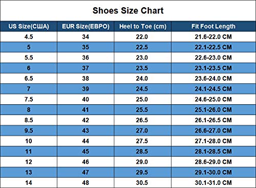 - SIZE ATTENTION:Each country is a different shoe size,Select the size according to the length of the foot,It is the most accurate,98% buyers choose right size by measuring the foot length,For slim feet please choose your normal sneaker size.If your foot is wider or fatter,please choose a larger size.A well-fitting multifunctional running trainers can bring more enjoy to your life.