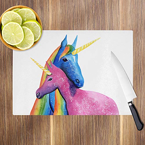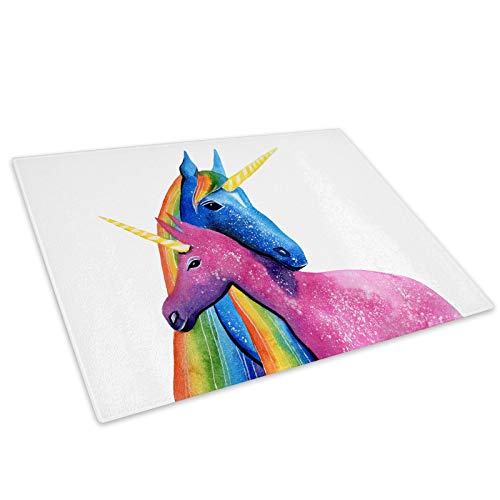 Hugging Unicorns Rainbow Glass Chopping Board | Worktop Protector