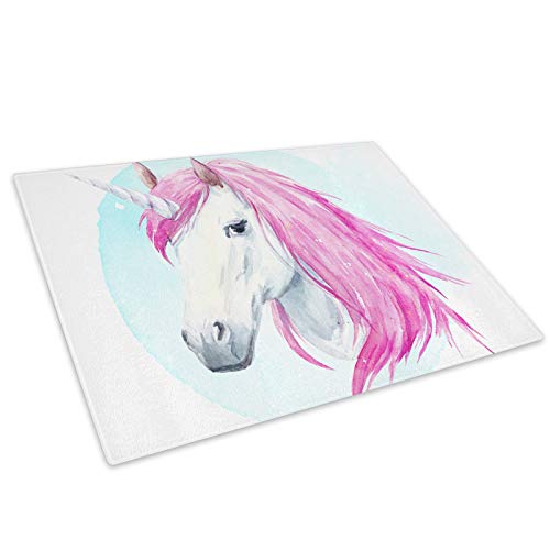 Pink Watercolour Unicorn Glass Chopping Board | Worktop Protector