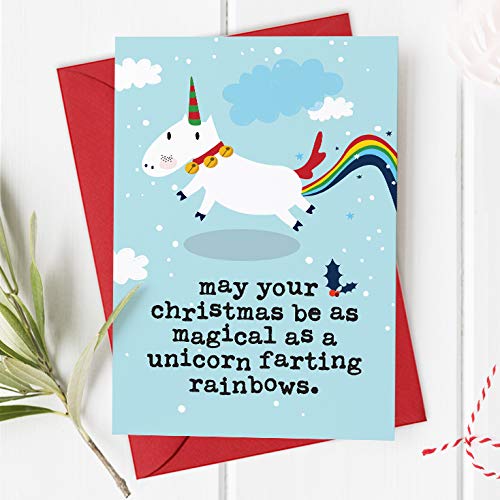 Magical Unicorn Farting Rainbows Christmas Card