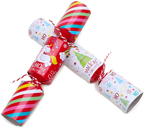 - In the box you will receive 6 unicorn design Christmas Crackers, Unicorn poster, Blindfold & Horn stickers.