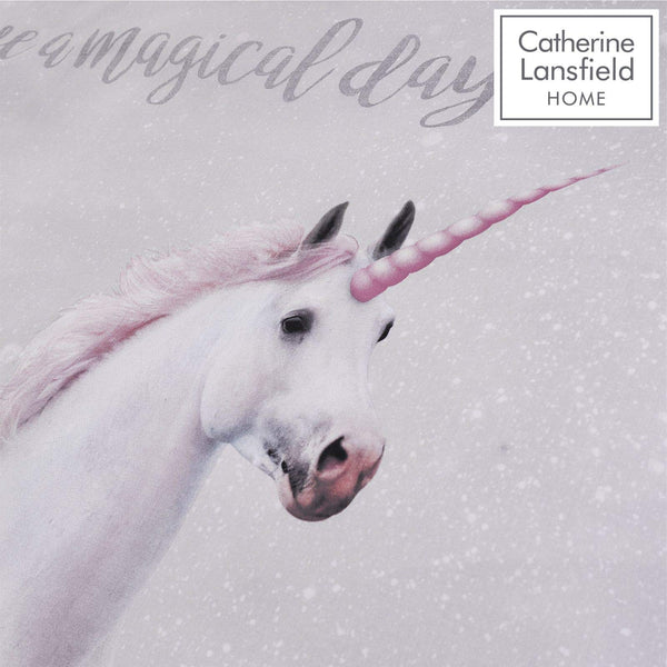 Details: Magnificent unicorns with a flowing pink mane printed on a fresh white background. Catherine Lansfield is renowned for style and quality - A contemporary Great British design. This pack contains a pair of 66x72inch (168x183cm) curtains. Why not complete the look by purchasing a duvet set and fitted sheet. Comfortable easy care fabric, requires minimal ironing. Genuine Catherine Lansfield Product. Drift off and dream of a magical fairy tale land with the Catherine Lansfield enchanted unicorn curtains. They feature a repeated pattern of magical white unicorns with dazzling pink manes, on a fresh white background. Finish off your magical fantasy bedroom with the matching duvet set, fitted sheet and sequin unicorn cushion.