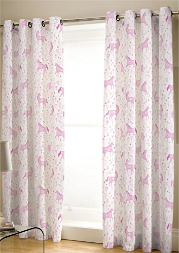 Catherine Lansfield Folk Unicorn Eyelet Curtains Pink, 66x72 Inch
