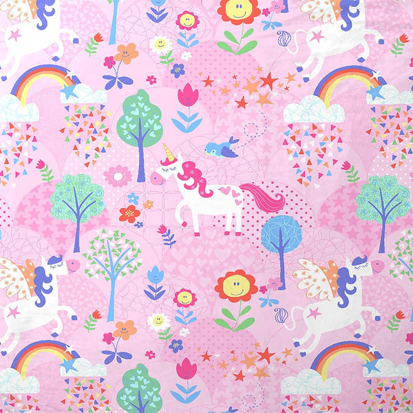Details: Fun unicorn, rainbow, flower wonderland print. Pencil pleat header to fit a range of window areas. Includes matching Unicorn tiebacks with stainless steel rings. Machine washable - ideal for the messiest of children. Supplied as a pair in a sturdy bag.