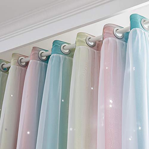 Star Blackout Curtain | Double Layer Star Window Curtain 1 PANEL | Pastel Rainbow | Festnight