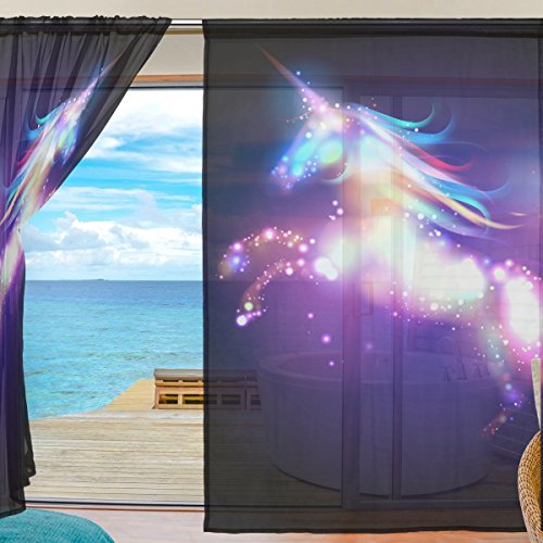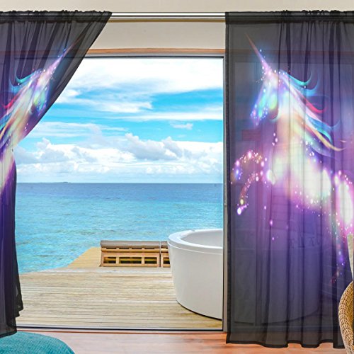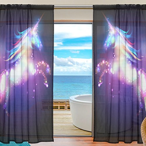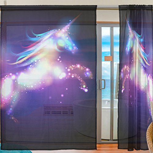 Magical Star Unicorn Window Sheer Curtain Panels -Window Treatment Voile Drapes Tulle Curtains 78 Inches Long 2 Panels