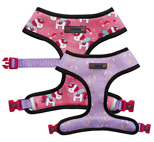 Love Frenchie | Reversible Harness, Collar 7 Lead | Unicorn Design | Medium