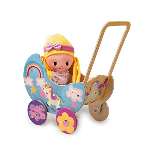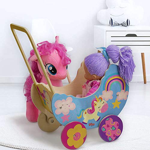 Wooden Unicorn Dolls Pram | Stroller | For Children | Multicoloured