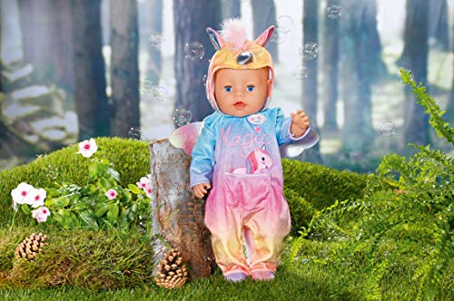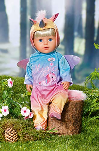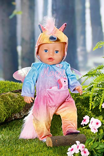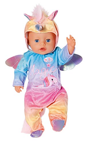 - UNICORN ONESIE - BABY Born believes in the magic of unicorns and loves dressing up in this super-colourful unicorn onesie. Featuring a fun rainbow print, fluffy mane, and horn this onesie is perfect for keeping her cosy whilst being oh so stylish!