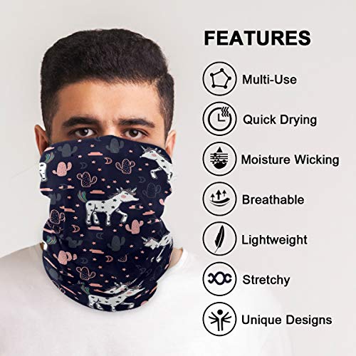 - Multi-functions: Face cover, bandana, handband, hairband, neck scarf, mouth cover, balaclava