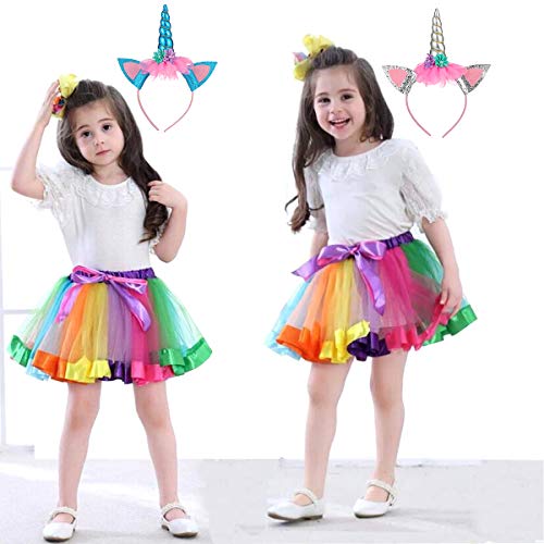 Rainbow Unicorn Tutu Skirt, Toddler Princess Dress Up Costume Set with Unicorn Headband for Dance Party Carnival