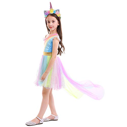 - ★★ Size: Gorgeous children girls unicorn princess dress costume size for age 3-10 years. Please refer to left size image details before purchasing. It is our responsibility to ensure that every guest has a happy shopping experience, please do not hesitate to e-mail our after-sales team if you have any questions or concerns;