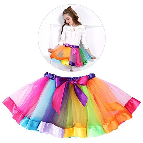 Details: Description Are you looking for a kind of beautiful and attractive performance dress for your kids? Our product will be an excellent choice for you. It is a rainbow layered skirt which is made of top-class material for comfortable wearing. Such a nice skirt will make your kids be the spot light in the crowds. Features - Color: As shown in the picture. - Material: Nylon and Polyester. - Size S: 21cm(Waist); 22cm(Length); 1-3 years old(Recommended Ages). - Size M: 23cm(Waist); 26cm(Length); 4-6 years old(Recommended Ages). - Size L: 25cm(Waist); 28cm(Length); 7-9 years old(Recommended Ages). - Innovative design: Elastic waist tutu skirt with bowknot ribbon. - Perfect for stage performance, ballet, party favors, costumes, dress up, and daily life etc. - The best gift for the girls, making them be a real princess. Package Including 1 x Girls Layered Rainbow Tutu Skirt Ruffle Tiered Dance Performance Dress for Girls 7-9 Years Old
