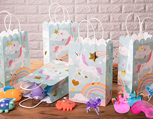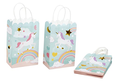 24-Pack Rainbow Unicorn Party Favour Bags Paper Gift Bag - ,Paper Treat Bags for Kids Birthday, Light Blue with Gold Foil Accent, 5.5 x 8.6 x 3 Inches