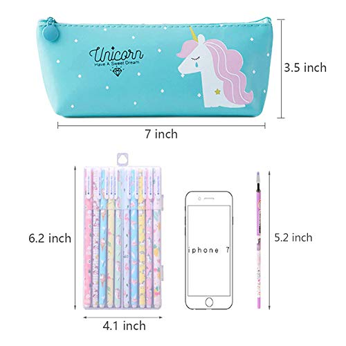 - CHILDREN'S SUPPLIES SET : The Stationery set is including 1 Unicorn Pencil Case, 10 colorful pen, 8 replaceable black refills and 1 small sticky notes.