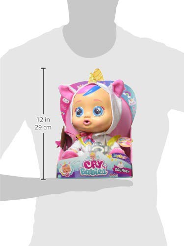 Details: Product Description Poor little cry Baby Dreamy the unicorn! Give her the dummy and a cuddle to stop her from crying. She cries real water and makes realistic baby noises when you take away her dummy! She also comes with her own unicorn inspired changeable onesie! Safety Warning Not suitable for children under 3 years. For use under adult supervision