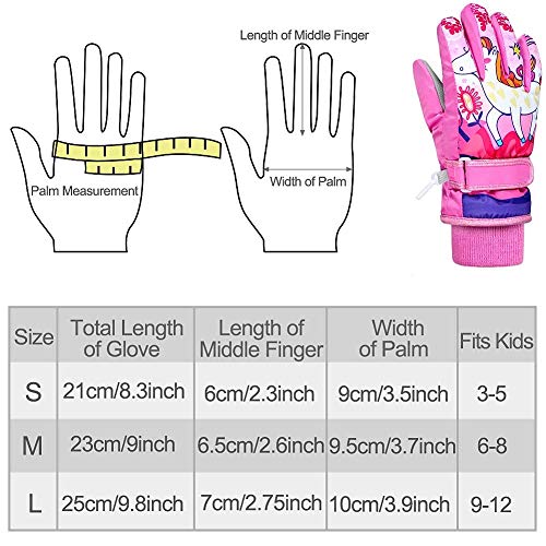 Details: Specification: Material: Nylon, Waterproof fabric, Non-slip PU material, Inner fleece Color: As pictures shown Waterproof and windproof, keep hands warm in the cold weather. Applications: Daily, climbing, hiking, cycling, skiing, outdoor walking, and so on. Size: Approx. S: (Children Age 3-5 years) Total Length: 21cm/8.3inches M: (Children Age 6-8 years) Total Length: 23cm/9inches L: (Children Age 9-12 years) Total Length: 25cm/9.8inches It is just a recommended reference, please check the size details in the pictures carefully. Note: 1. Due to the difference between different monitors, the picture may not reflect the actual color of the item; 2. Please allow slight dimension difference due to different manual measurement. Package Includes: 1 Pair of Ski Gloves for Kids