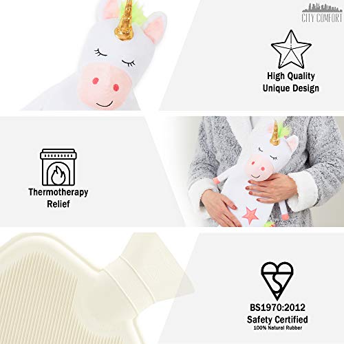 Details: Legal Disclaimer SUPER SOFT HOT WATER BOTTLES WITH COVER: These hot water bottles are made with quality materials, to ensure that they are safe and durable and come with cute character fleece hot water bottle covers which are perfect to cuddle up with. You can choose from our white and pink unicorn hot water bottle with a sparkly gold horn detail or the sleepy star hot water bottle in grey. Both designs come with a natural rubber 1 litre hot water bag to keep all the family warm during winter nights EASY TO USE: for this kids hot water bottle, we've added an attractive and very soft removable soft cover, making it very easy to use. Fill the 1 litre hot water bottle and put it in the bed up to 10 minutes before going to sleep and they will keep you warm throughout the night, making it the perfect bed warmer CHOOSE YOUR FAVOURITE DESIGN: a fun unicorn or a cute sleepy star, whichever style you go for, you will receive a very attractive childrens hot water bottle which doubles up as a soft cuddly cushion to keep them warm. The plush cover is made from soft and cuddly material which is great for comforting young children from aches and pains SAFE: BRITISH MANUFACTURER TESTED to BRITISH STANDARD BS1970:2012 A FUN GIFT IDEA: are you looking for unicorn gifts for girls for a birthday or trying to find original small stocking fillers for kids for this Christmas? These cute small hot water bottle with character covers are great for gifting and suitable for all ages, boys or girls
