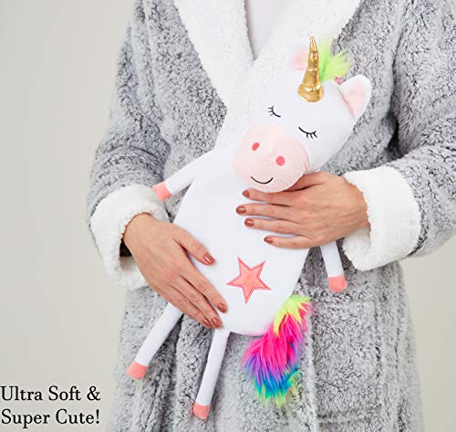 - CHOOSE YOUR FAVOURITE DESIGN: a fun unicorn or a cute sleepy star, whichever style you go for, you will receive a very attractive childrens hot water bottle which doubles up as a soft cuddly cushion to keep them warm. The plush cover is made from soft and cuddly material which is great for comforting young children from aches and pains