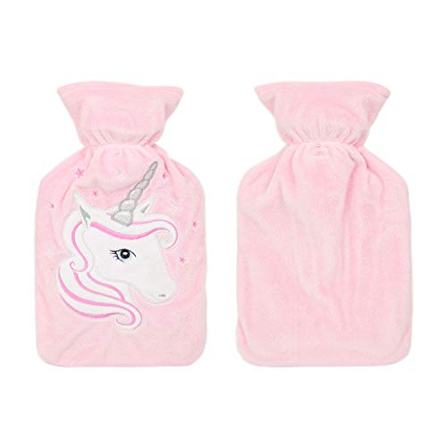Details: Product Description Stay cosy in bed this winter with one of these Pink Unicorn Hot Water Bottles, the ideal way to keep your little girl snug and warm! The hot water bottle holds 1 litre and is manufactured to the british standard 1970:2012. The soft pink cover features a white unicorn Also great for use as a hand warmer or as a heat pad for soothing aches such as back pain etc. Do not fill the bottle to more than 2/3rds of it's capacity Never Use Boiling Hot Water Hot water bottle is made of 100% Rubber with Screw Cap Top Cover is removable and Machine Washable Dimensions: 16cm x 26.5cm x 4cm Box Contains 1 x Unicorn Hot Water Bottle