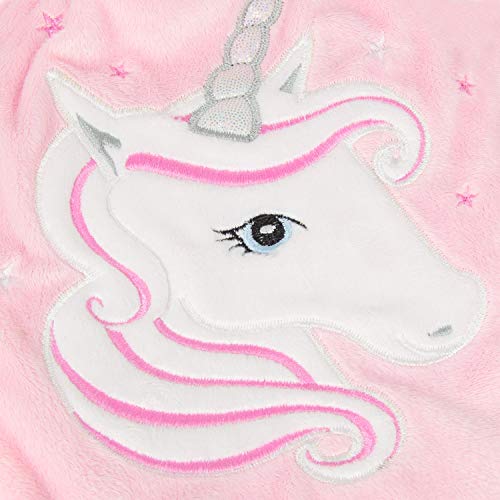 - The soft pink cover features a white unicorn