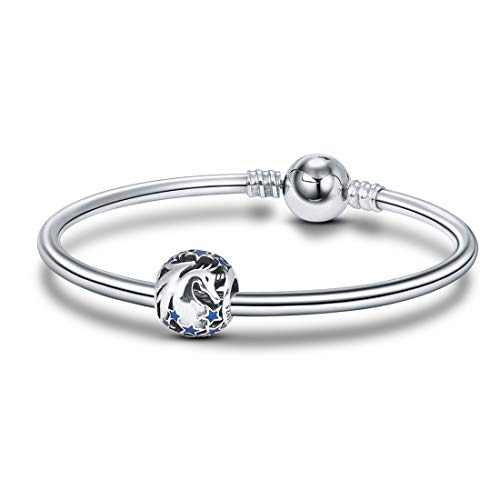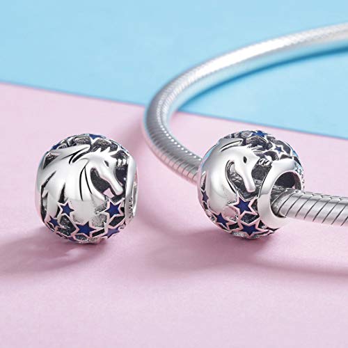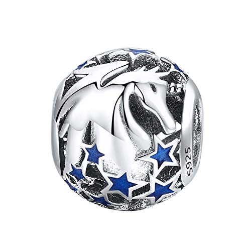 Unicorn Star Bead Charm Fits Pandora Bracelet | 925 Sterling Silver & Blue Enamel