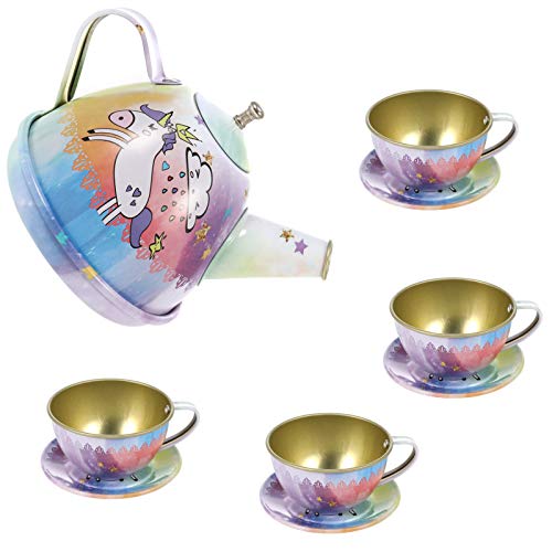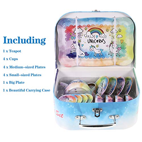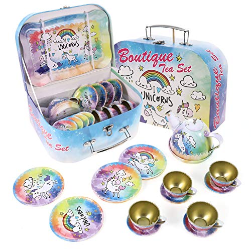 I Love Unicorns | 15 Piece Pretend Tin Tea Set For Kids