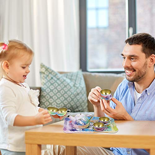 - 【Tea Time Play】- This adorable toy tin tea set is designed for pretend play, encouraging little children to use their imagination and improve their creativity and social skills.