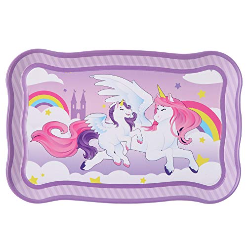 Details: SUPER VALUE PACK. Our pretty unicorn tea set includes 1 teapot, 4 cups, 4 medium-sized plates, 4 small-sized plates, 1 big plate, and a case. REAL FUNCTION. This adorable toy tin set is designed for pretend play, encouraging children to use their imagination and improve their creativity and social skills. The tea set is decorated with a magical unicorn, rainbow, and other delightful castles. Sure to delight and inspire your little unicorns. ENDLESS FUN. The unicorn party tea set is easy to be stored and transported. The material used is super durable that will last through years of indoor and outdoor tea party fun. Perfect for toy storage, room décor, birthday gifts, and other unicorn-themed occasions. PREMIUM QUALITY. Child safe: non-toxic. Meet US toy standards. Safety test approved. CUSTOMER SATISFACTION. Providing a 100% satisfaction experience is our main priority to our customers. Feel free to message us through “contact sellers” if products don't meet your expectations. The celebrations start at JOYIN!